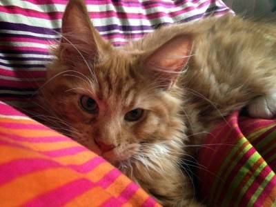 Maniek szybko zawłaszczył nasze łóżko. W pojęciu Mańka, łóżko to żywa istota, która próbuje go upolować więc trzeba ją upolować najpierw a jeśli zginąć to w walce! I Maniek walczy. Czai się na poduszkę, rzuca się na nią, kotłuje, drapie, gryzie, przydusza do ziemi, odskakuje, żeby dać jej szansę ale przecież jej los jest już przesądzony. Niestety, podstępne łóżko wysyła kolejne zastępy wojsk - za jedną poduszką jest kolejna i ją też trzeba zniszczyć więc Maniek biega, skacze a kiedy pada zmęczony okazuje się, że łóżko też już nie walczy tylko otula Mańka ciepłą kołderką i pozwala się wyspać przed następnym starciem. Tygrys ma inne podejście do łóżka ale minie jeszcze kilka dni zanim zdecyduje się wrócić na swoje miejsce przy boku swojej pani.