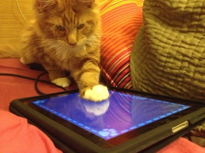 Na ten temat wymądrzyli się już chyba wszyscy. Każdemu właścicielowi kota wydaje się, że powinien dać odpowiedź na pytanie "czy twój kot gra w grę dla kotów na IPadzie". Najlepiej na fb. Nie wiadomo dlaczego. Część tak uważa od kiedy ma IPada, reszta - od kiedy dowiedziała się, że słynna kotka Choupette Karla Lagerfelda ma swój tablet i pasjami łowi na nim rybki. Swoją drogą ciekawe czy Joanna Przetakiewicz została jej przedstawiona? A Anja Rubik? Może grały razem? W końcu obie są takie urocze! My też postanowiliśmy zająć stanowisko w tej sprawie zachęceni wpisem kolegi, którego długowłosa brytyjka niezwykłej urody w ogóle się nie zainteresowała ofertą AppStore'a i rzeczywiście - okazało się, że tu też Maniek ją przewyższa;) Zagrał, nawet kilka razy, zdobył ok 100 punktów, powąchał i poszedł wkurzać Tygrysa. On znacznie lepiej ucieka. Rekordy niech bije Choupette.