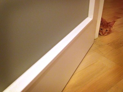 Kiedy pierwszy raz zastaliśmy Mańka w tej pozycji przed drzwiami sypialni myśleliśmy, że mu smutno. Siedzieliśmy na łóżku w trójkę, z Tygrysem a Maniek patrzył jakby z wyrzutem - bawicie się beze mnie. Potem okazało się, że on po prostu lubi sobie tak czasem poleżeć. Z włażeniem gdziekolwiek, a już na pewno do łóżka nie ma żadnych problemów