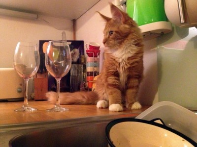 Zaraz jak tylko wylazł spod kanapy, Maniek zaczął zwiedzać. A zwiedzać to on lubi bez ograniczeń. Pół biedy kiedy ładuje się na kuchenny blat albo próbuje się wspiąć na parapet wściekła, że Tygrys po prostu na niego wskakuje. Czasem jednak Maniek po prostu znika. Nie ma go pod łóżkiem, ani na półce pod stolikiem, nie siedzi w żadnej szafie, nie schował się pod kołdrą. Nie ma go i już. A potem nagle pojawia się na środku mieszkania, przeciąga się i patrzy zdziwiony dlaczego my się dziwimy. Ma w naszym mieszkaniu swoje kocie kąty